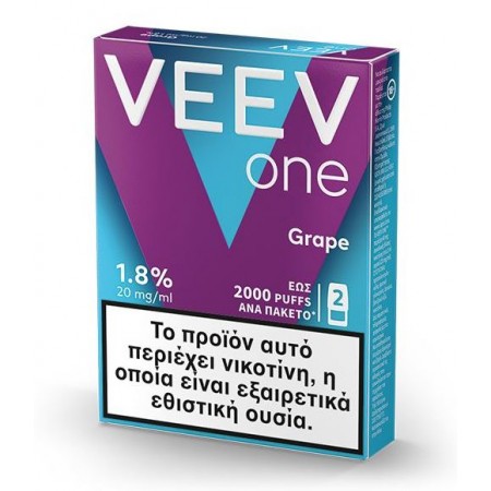 Veev One 2 Pods Grape Συσκευασία με 2 προγεμισμένες κάψουλες Veev One χωρητικότητας 2ml, περιεκτικότητα νικοτίνης... 6,00 €