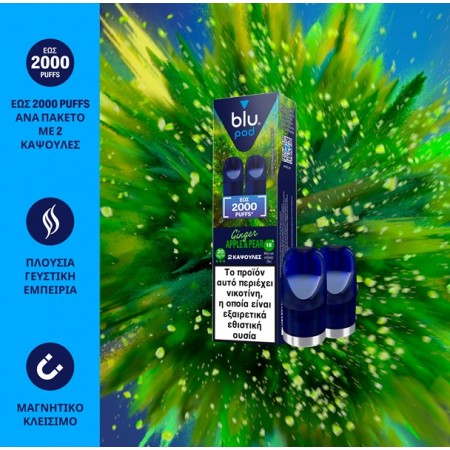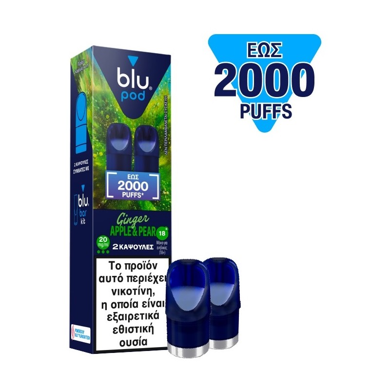 Blu 2.0 Pods Green Apple 18mg Συσκευασία με 2 προγεμισμένες κάψουλες Blu 2.0 με περιεκτικότητα νικοτίνης 18mg και διάρκεια... 6,00 €