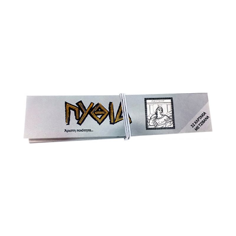 Χαρτάκια Πυθία King Size... Χαρτάκια στριφτού τσιγάρου Πυθία King Size Slim ασημί. Το κάθε πακέτο έχει 32... 0,45 € 0,90 € -50%